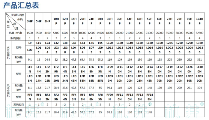 主要制冷系统配件采用知名品牌产品,如高性能进口压缩机,低噪音高效率离心式风机等,节能、性能可靠。